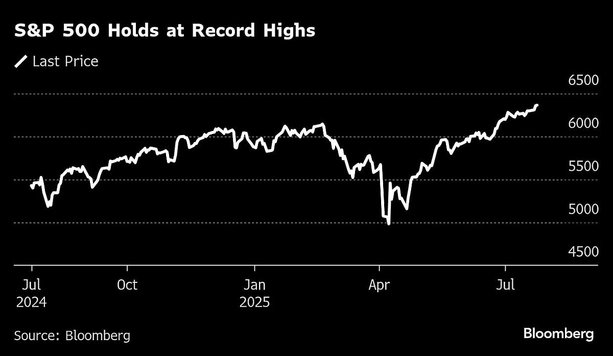 The S&P 500 has surged 28% from its April lows as investors grew optimistic that President Donald Trump’s tariff war won’t hurt the economy and corporate earnings as initially feared. However, the latest strong jobs data weakened expectations for imminent cuts by the Fed ahead of the central bank’s meeting next week. Traders slightly pared bets, projecting less than two reductions this year, after jobless claims fell for a sixth straight week.