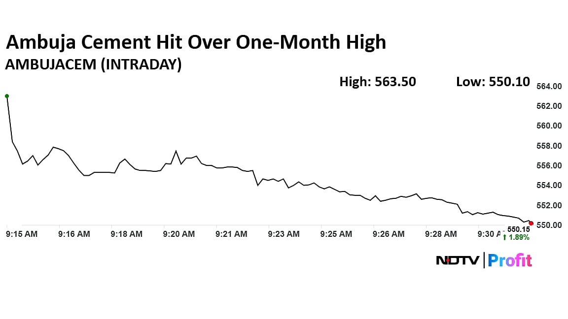 Ambuja Cement shares were trading with gains of around 3%, compared to Monday’s closing price of Rs 539.95. This was after Morgan Stanley has issued a fresh note on Ambuja Cements, maintaining a bullish ‘overweight’ rating on the counter, in the wake of a major announcement to amalgamate its subsidiaries ACC Ltd. and Orient Cement.