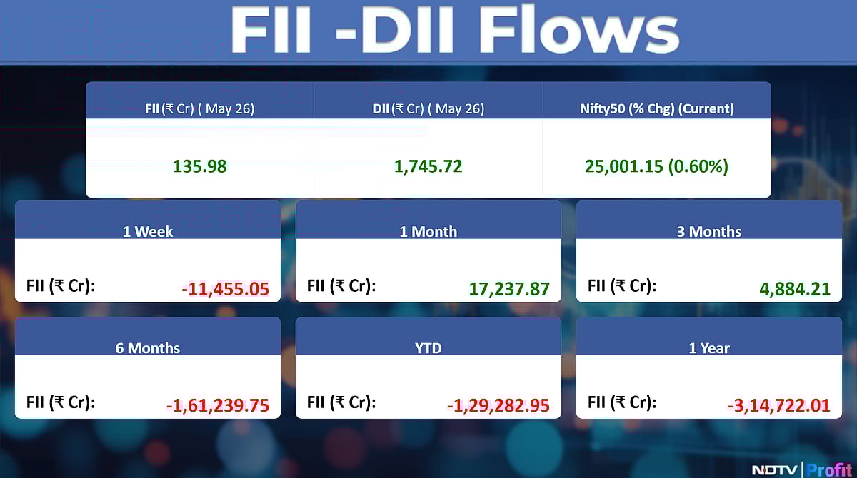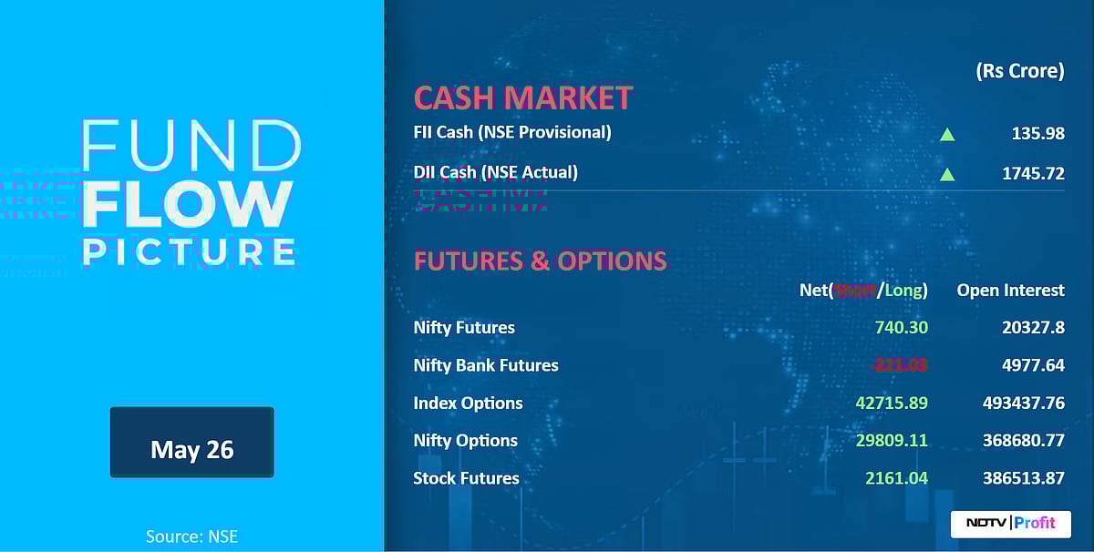 • Nifty Options May 29 Expiry: Maximum Call open interest at 26,000 and Maximum Put open interest at 24,000.